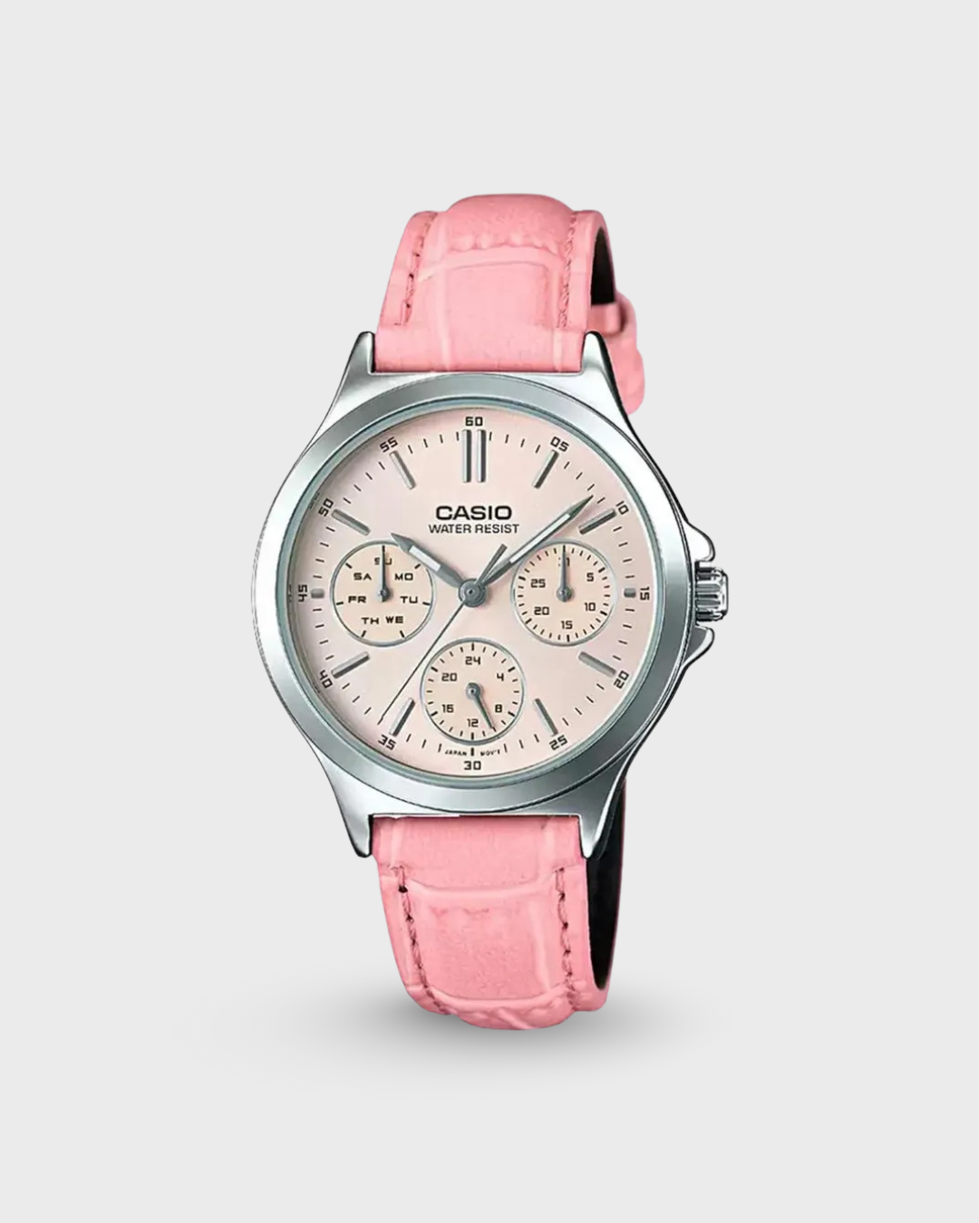 Enticer Women Quartz Pink Dial Multi-Function Leather Watch A1150