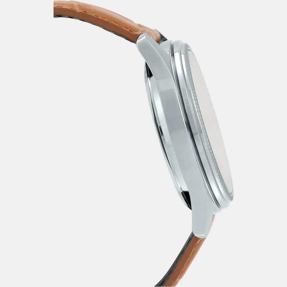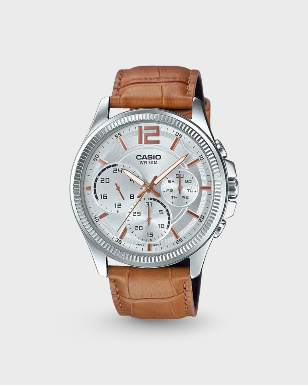 Enticer Men Quartz Silver Dial Chronograph Leather Watch A1890