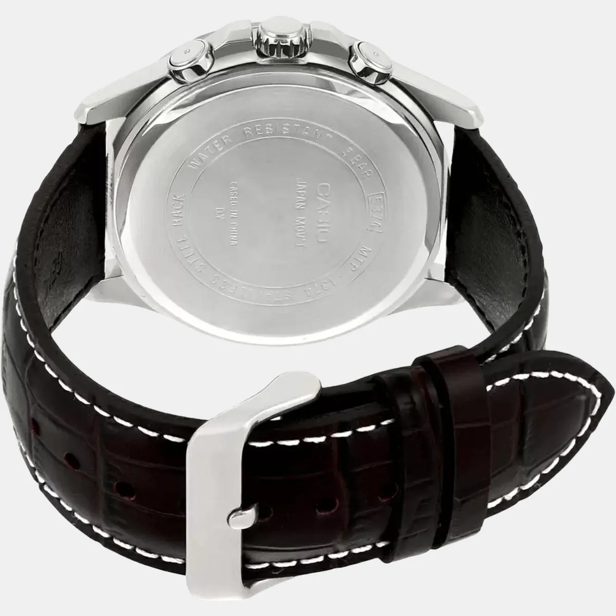 Enticer Men Quartz Silver Dial Chronograph Leather Watch A835