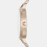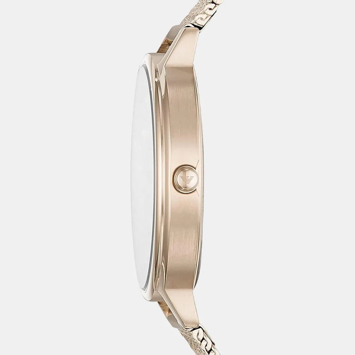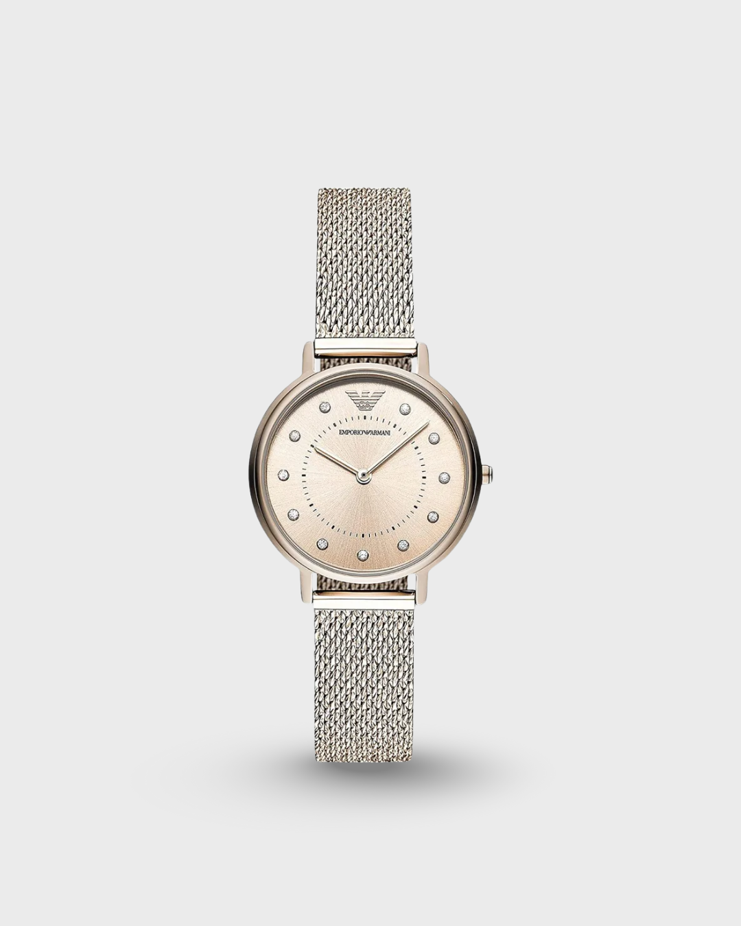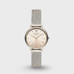 Discover Emporio Armani watch for women, featuring a pink dial, a pink strap made of stainless steel in a round case. Built with mineral glass and stainless steel body to balance clarity and durability. Dimensions include 32 mm dial size, 14 mm strap width, 6 mm profile for comfortable wear. Key features: quartz movement, analog display, 3 atm water resistance. A secure folding clasp ensures a dependable fit.