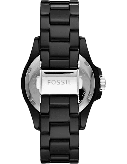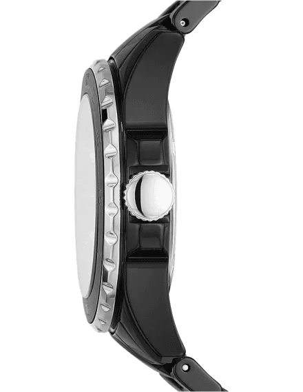 This 36mm FB-01 features a black sunray dial, three-hand movement and a black ceramic bracelet.