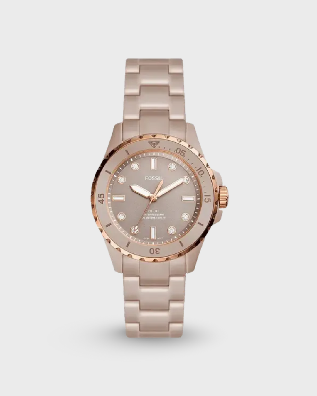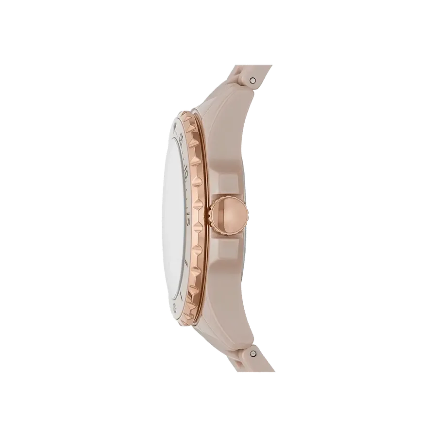 This 36mm FB-01 features a salted caramel satin dial, three-hand movement and salted caramel ceramic bracelet.