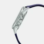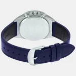 Discover Casio watch for men, featuring a white dial, a blue strap made of leather in a round case. Built with mineral glass and stainless steel body to balance clarity and durability. Dimensions include 44 mm dial size, 22 mm strap width, 11 mm profile for comfortable wear. Key features: quartz movement, chronograph display, 10 atm water resistance. A secure buckle clasp ensures a dependable fit.