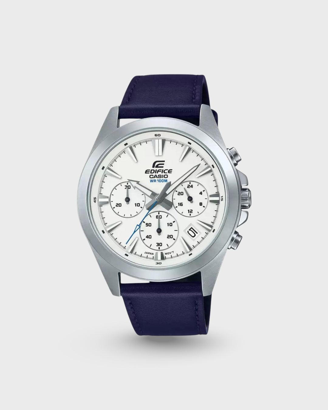 Edifice Men Quartz White Dial Chronograph Leather Watch ED543