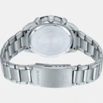 Discover Casio watch for men, featuring a black dial, a silver strap made of stainless steel in a round case. Built with mineral glass and stainless steel body to balance clarity and durability. Dimensions include 45.5 mm dial size, 22mm strap width, 13 mm profile for comfortable wear. Key features: quartz movement, chronograph display, 10 atm water resistance. A secure one-touch 3 fold-clasp ensures a dependable fit.