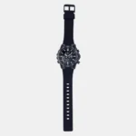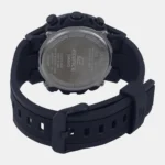 Discover Casio watch for men, featuring a black dial, a black strap made of resin in a round case. Built with mineral glass and resin body to balance clarity and durability. Dimensions include 52 mm dial size, 22 mm strap width, 13 mm profile for comfortable wear. Key features: quartz movement, analog-digital display, 10 atm water resistance. A secure buckle clasp ensures a dependable fit.