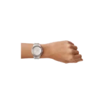 This 37mm Stella Sport features a silver satin, sunray dial, multifunction movement and stainless steel bracelet.
