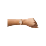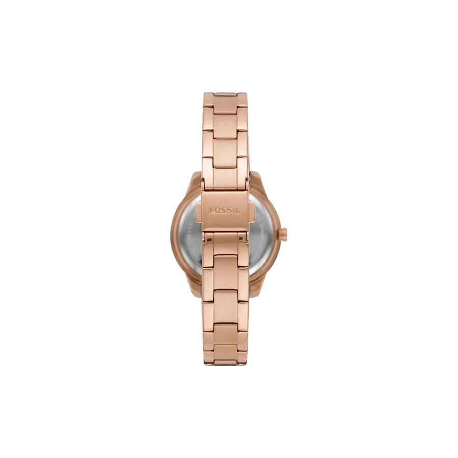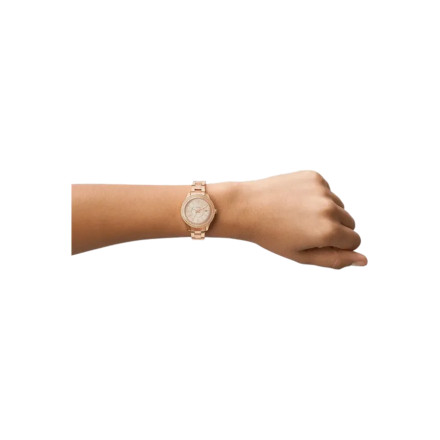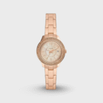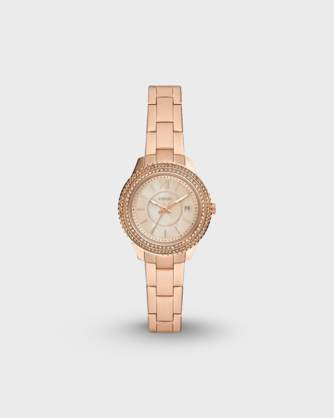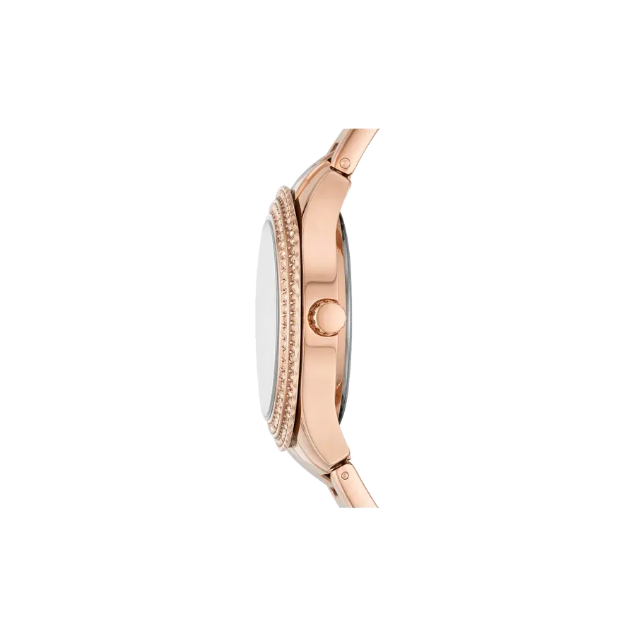This 30mm Stella features a rose gold mother-of-pearl glossy dial, three-hand date movement and rose gold-tone stainless steel bracelet.