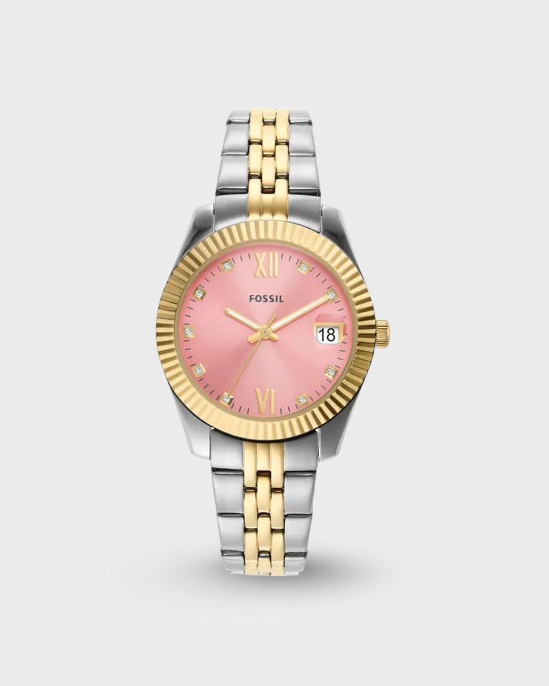 A classic watch in a modern design will always be an ideal gift for a woman. The envelope is combined with a silver-free bracelet, high-quality stainless steel was used for their production. Fossil Scarlette ES5173 operates on the basis of a quartz movement, moreover, it has been decorated with tasteful crystals. A pink shield is equipped with a date of month days.
