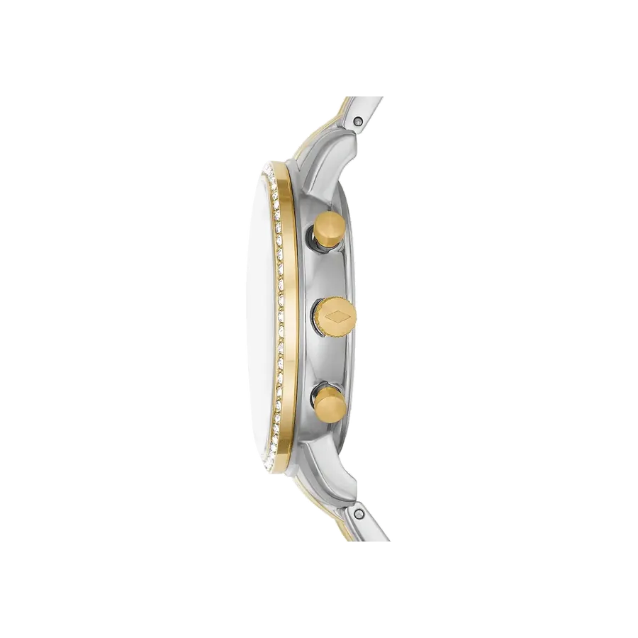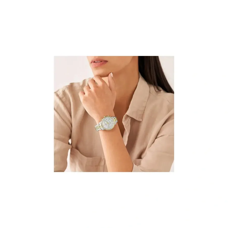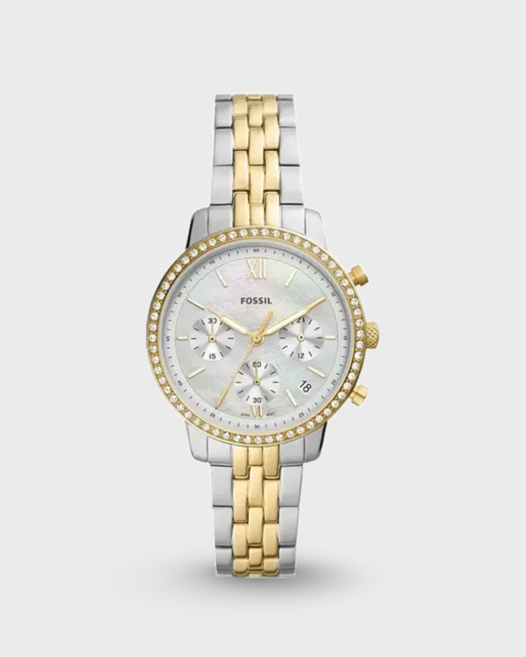 This 36mm Neutra watch features a mother-of-pearl glossy dial, chronograph movement and two-tone stainless steel bracelet.