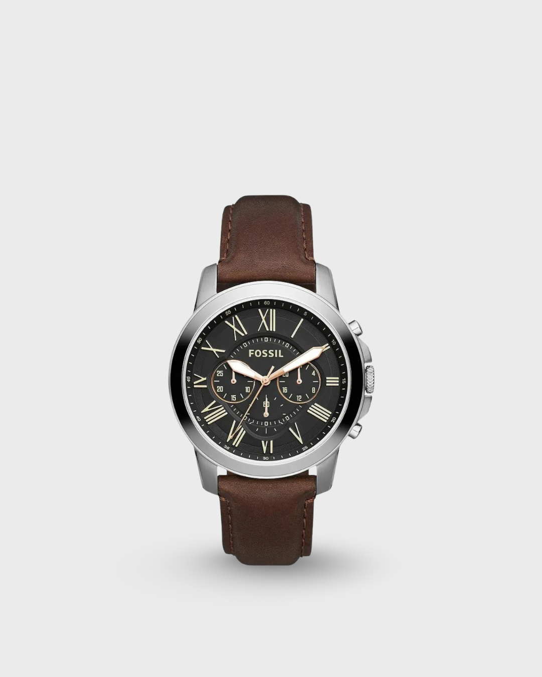 Fossil Men Grant Chronograph Brown Leather Analog Watch