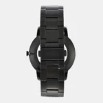 Black PVD stainless steel case with a black stainless PVD steel bracelet. Fixed black stainless steel bezel. Black satin dial with black hands and index hour markers. Dial Type: Analog. Quartz movement. mineral crystal. Solid case back. Case size: 44 mm. Round case shape. Water resistant at 50 meters / 165 feet. Functions: hour, minute, second. Casual watch style
