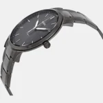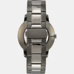 This electronic watch features a quartz crystal that oscillates when current is applied to it. The Minimalist watches are simple yet best in quality from case to strap. The grey sunray dial nestled in a 44 mm case features plain three hands, stick indices at five-minute intervals and a crown for time adjustment. Its smoke grey stainless steel strap is interchangeable with all 22 mm straps.