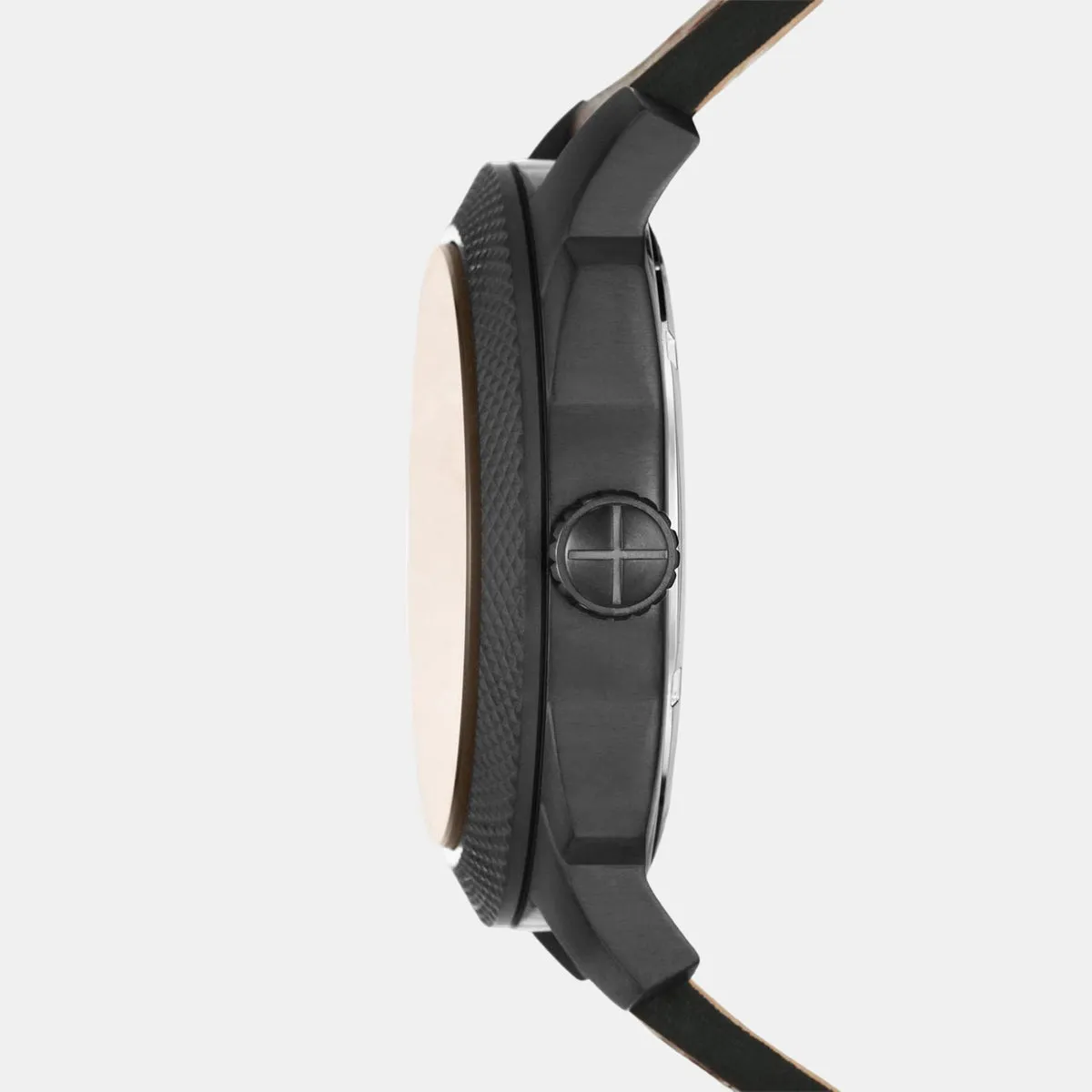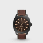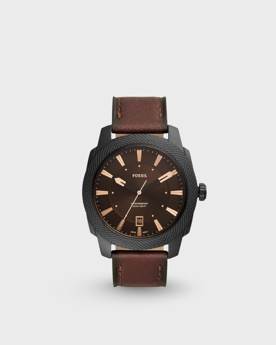This 49mm Machine features a black sunray textured dial, three-hand date movement and dark brown eco leather strap.
