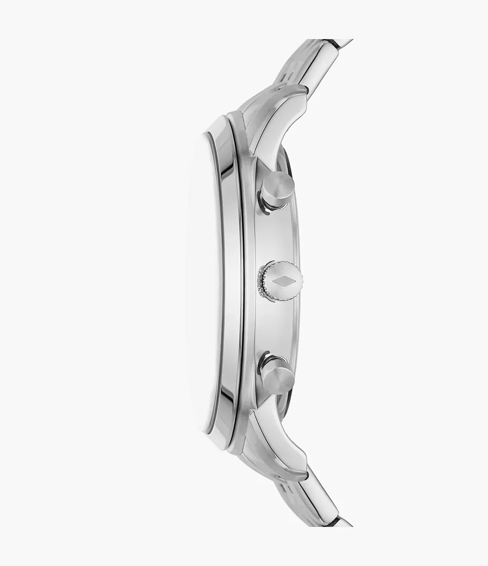 Make every second a memorable moment by donning this watch from the Neutra collection by Fossil. Housed in a 44 mm case, the dial is shielded with mineral glass and runs on a quartz movement. It is water resistant up to 50 m and is ideally suitable for men. The timepiece features a uni-directional bezel. Inspired by architecture with its simple proportions and symmetry, this functional watch is refined and versatile. It features an updated numeral font, a sunray dial with subdials for 24-hour time and a stopwatch