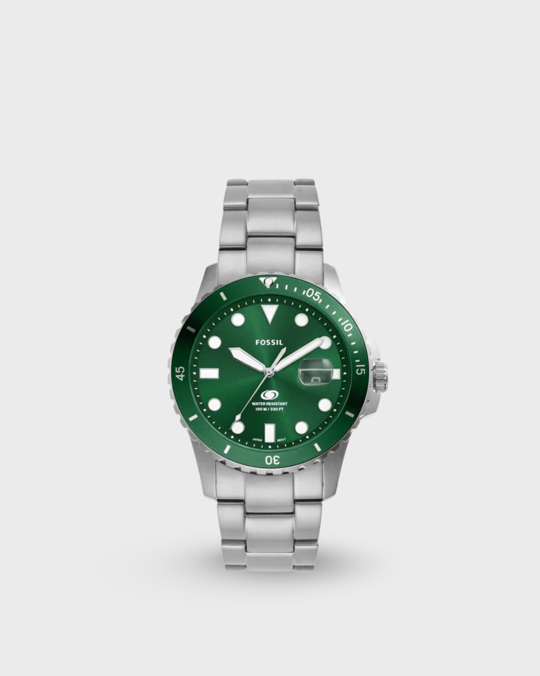 Purposeful design details define our time- Honoured watch collection, Fossil Blue Dive. This stainless steel dive-style timepiece is expertly crafted with a 3-link stainless steel bracelet, geometric indices and a unidirectional rotating top ring. Tested to 100 meters of water resistance.