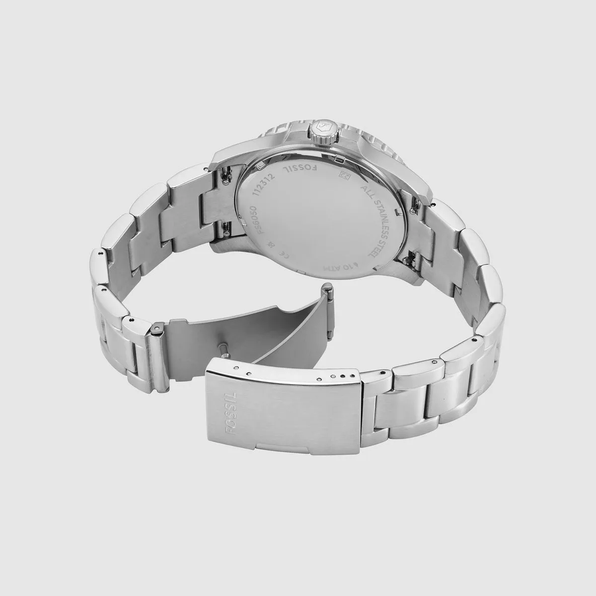 Redefine elegance on your wrist by donning this wristwatch from Fossil. The watch dial is protected with mineral glass and is water resistant up to 100 m. The timepiece works on a quartz movement. It is a must-have accessory for trendy individuals.