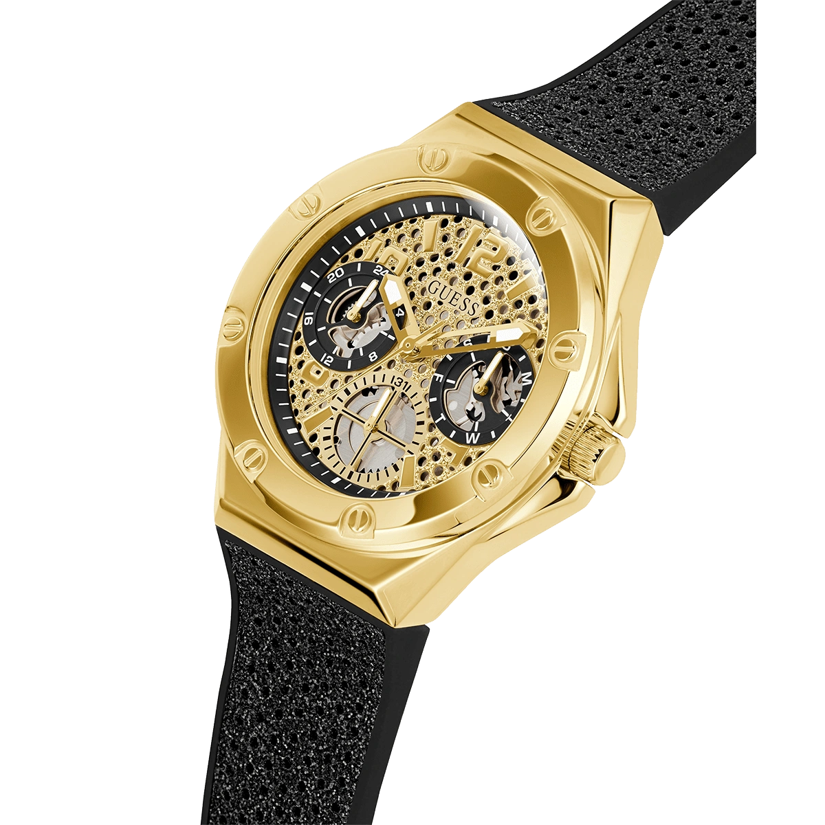 Make a statement with the GW0620L2 Women’s Analog Watch. This round 40mm watch features a multi-colored dial and a silicone strap in black. It operates on quartz movement and offers 5 ATM water resistance. With a strap buckle clasp, it’s perfect for casual occasions and weighs 110 grams. This watch comes with a 2-year warranty and is crafted in the USA.