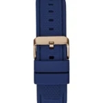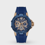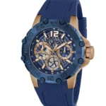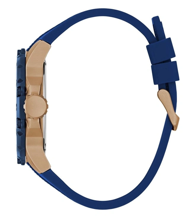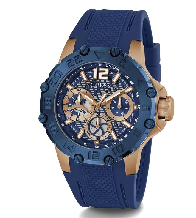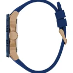 Express your adventurous side with this male chronograph wristwatch. The round 46 mm case and blue dial, made of stainless steel, feature a blue silicone strap, 22 mm wide. With chronograph display and quartz movement, this watch is water-resistant up to 5 ATM. Ideal for casual occasions, it weighs 145 gm, has a 13 mm case thickness, and comes with a 2-year warranty. Proudly made in the USA.