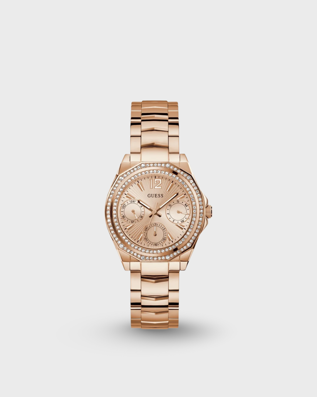 Dress Women Quartz Rose Gold Dial Multi-Function Stainless Steel