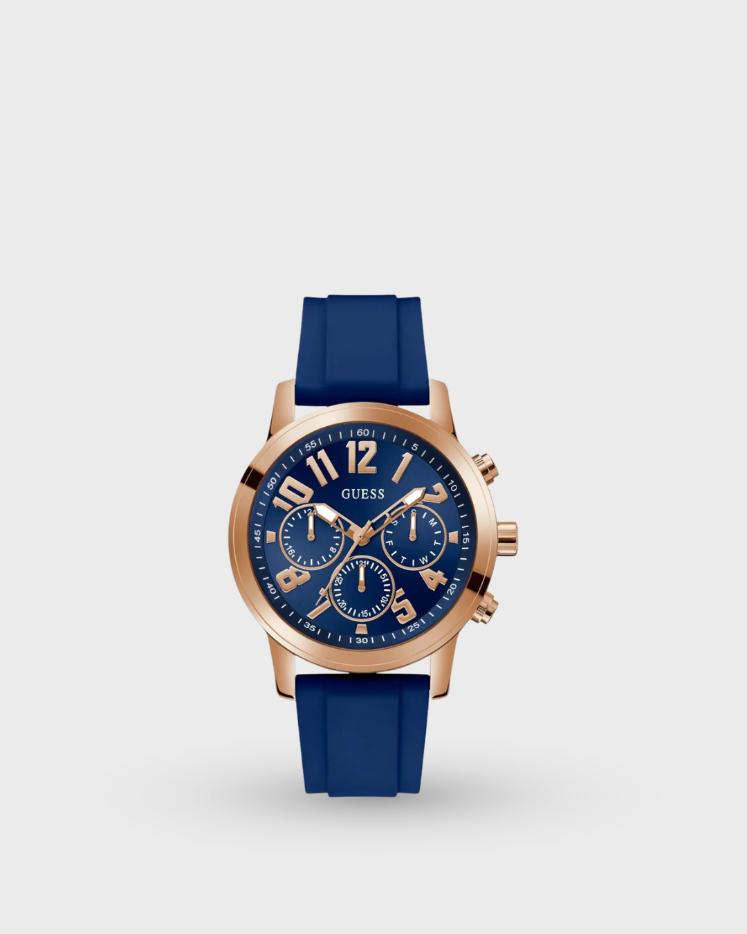 All you need for your watch wardrobe is this true dress to sport hybrid look featuring a chrono-look multi-function movement paired with a silicone strap.