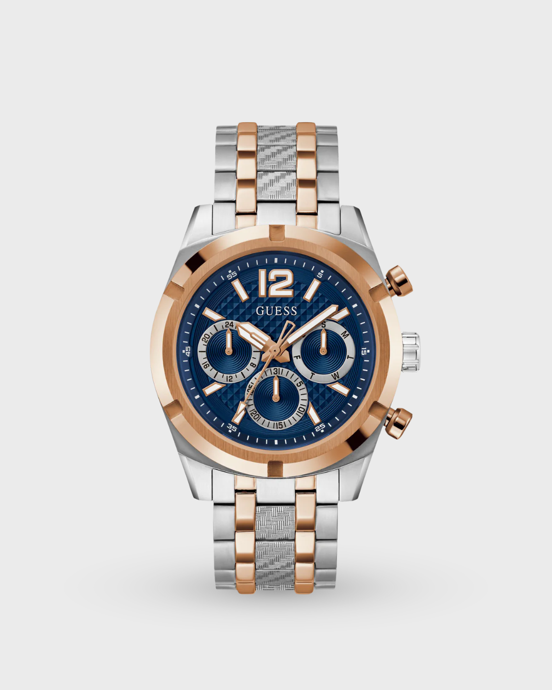 A must-have timepiece for all the watch aficionados, this men’s analog watch from the collection by GUESS will be a perfect pick. Thetwo tone round dial is protected by a mineral glass. It features and a crown for time adjustment. The stainless steel strap comes in a two tone hue that further elevates the look of the timekeeper. Besides, it is completed with a pilot buckle clasp to ensure a secure fit on the wrist.