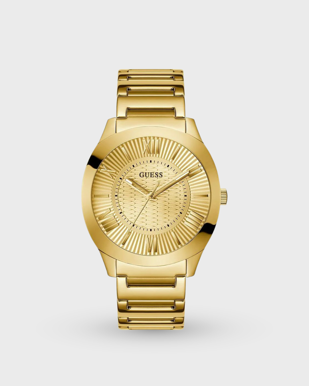 Back to Basics with this dressed up look featuring a unique textured dial design and gold bracelet.
