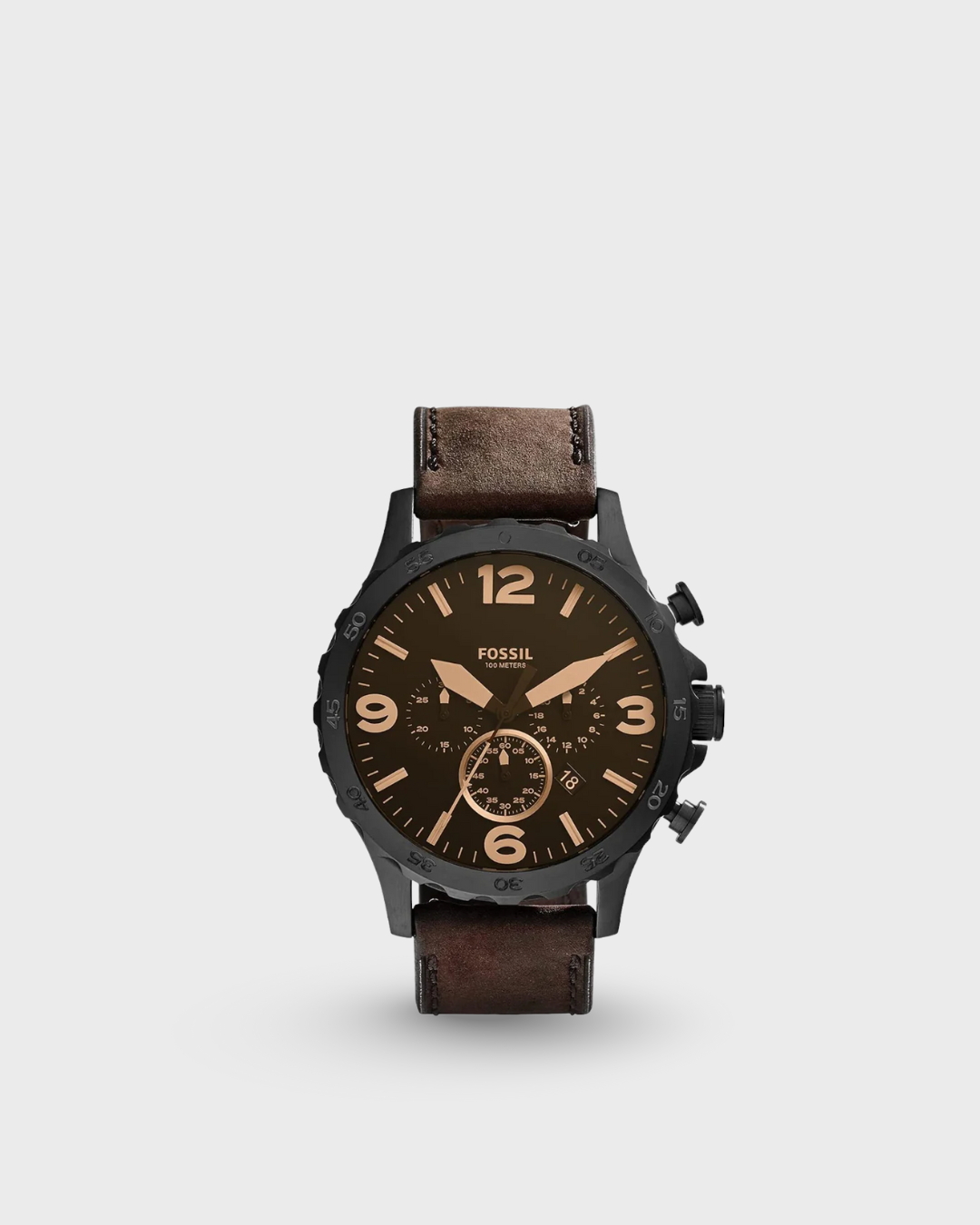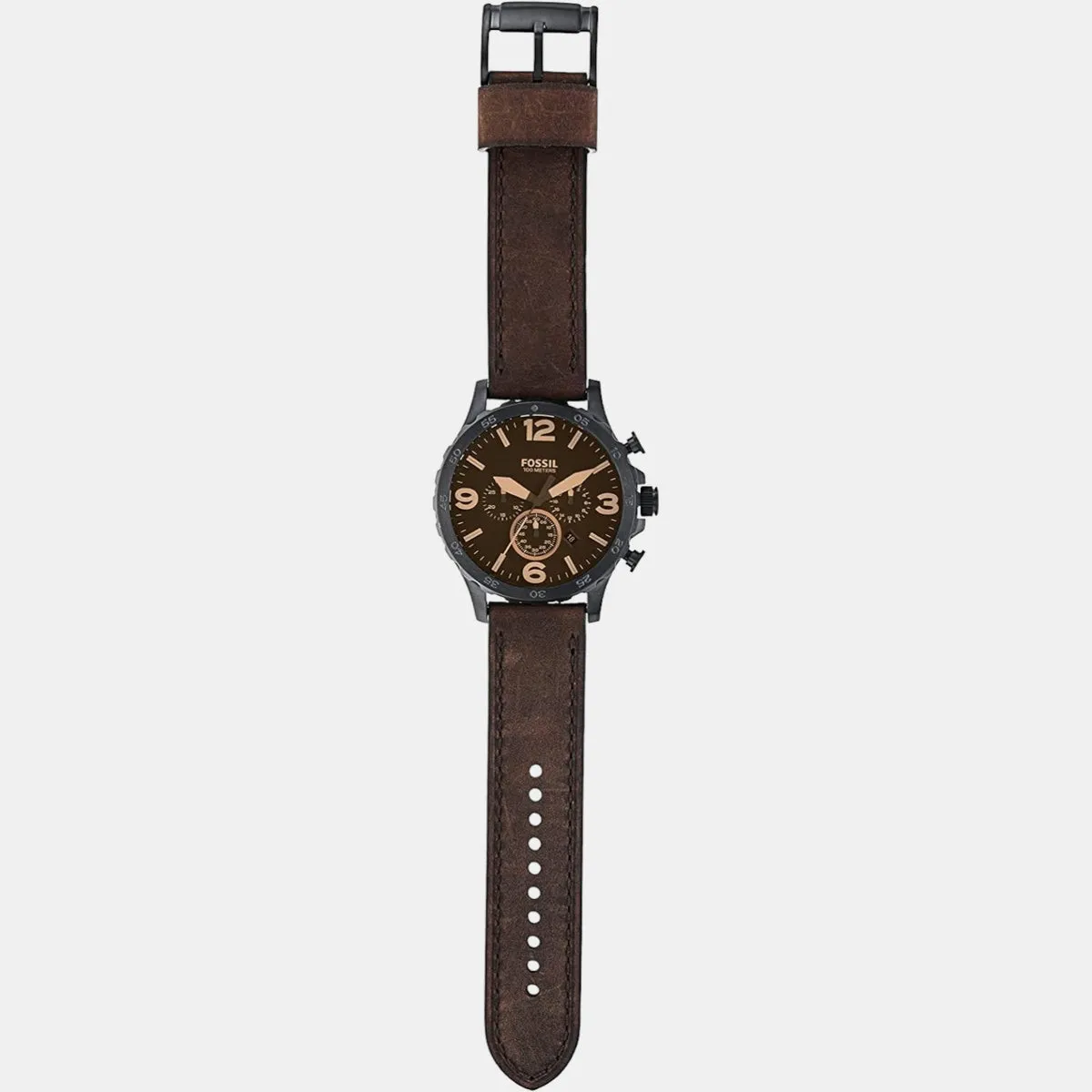 Product Specification Model Number Jr1487 Brand Fossil Collection Nate Features Chronograph, Date Case Size 50 Mm Case Shape Round Movement Quartz Strap Type Leather Dial Colour Brown Gender Men Water Resistance (Meters) 50 Glass Material Mineral Glass Warranty Period 2 Years