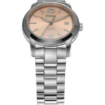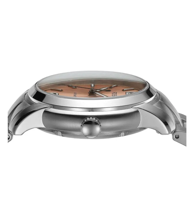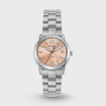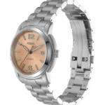 Amaze everyone around you by wearing this women’s analog watch from FOSSIL. The rose gold round dial is protected by a mineral glass. The stainless steel strap comes in a silver hue that further elevates the look of the timekeeper. Besides, it is completed with a fold-over push button clasp with safety clasp to ensure a secure fit on the wrist.