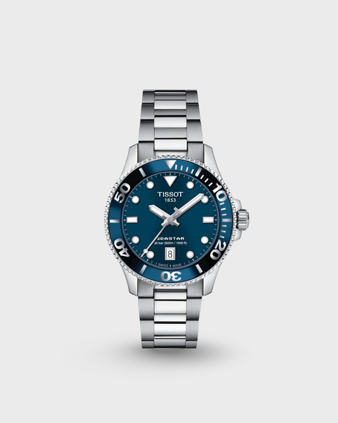In crystal clear waters, you can see the sun’s rays breaking through the surface. In your mind, only calm. On your wrist, the Seastar 1000, the door to this underwater world. It’s chic, assertive and versatile. Whether you choose the black, blue or white lacquered dial, it comes with a stainless steel case and bracelet, a uni-directional rotating bezel with a mineral glass insert, a screw-down crown and water resistance up to 30 bar (300m / 1000ft)). And if you want, you can quickly switch the bracelet for an orange, white, light-blue or black silicone strap. Change your outlook and step into another world.