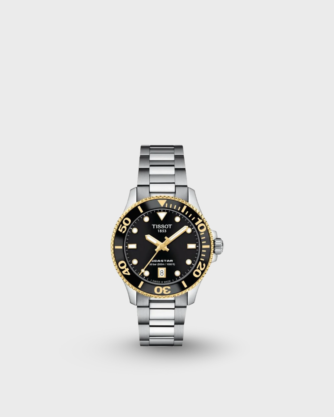 In crystal clear waters, you can see the sun’s rays breaking through the surface. In your mind, only calm. On your wrist, the Seastar 1000, the door to this underwater world. It’s chic, assertive and versatile. Whether you choose the black, blue or white lacquered dial, it comes with a stainless steel case and bracelet, a uni-directional rotating bezel with a mineral glass insert, a screw-down crown and water resistance up to 30 bar (300m / 1000ft)). And if you want, you can quickly switch the bracelet for an orange, white, light-blue or black silicone strap. Change your outlook and step into another world