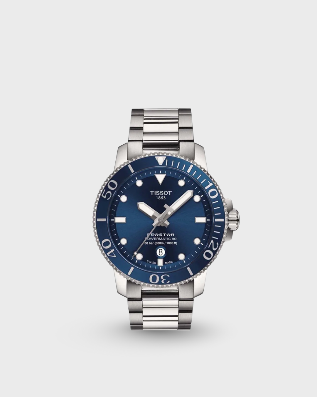 The Tissot Seastar 1000 merges style and performance without compromising either. With its water resistance up to 30 bar (300 m/1000 ft), screw-down crown and case back, it is the ultimate watersport watch, now combined with the energy of the Powermatic 80 movement offering up to 80 hours of power reserve when most of automatic movements boasts around 40 hours.