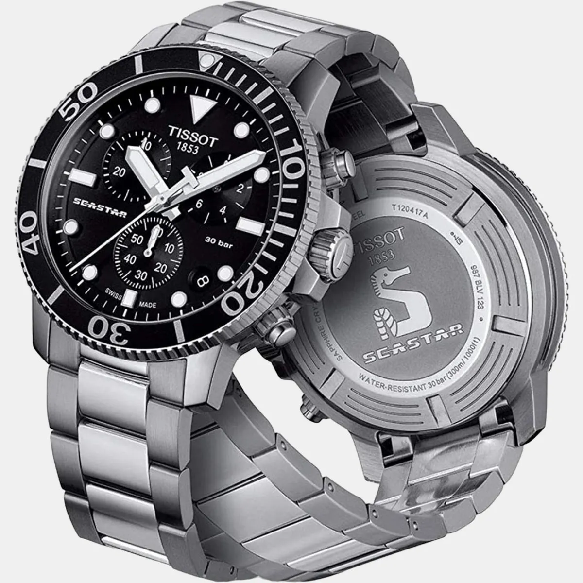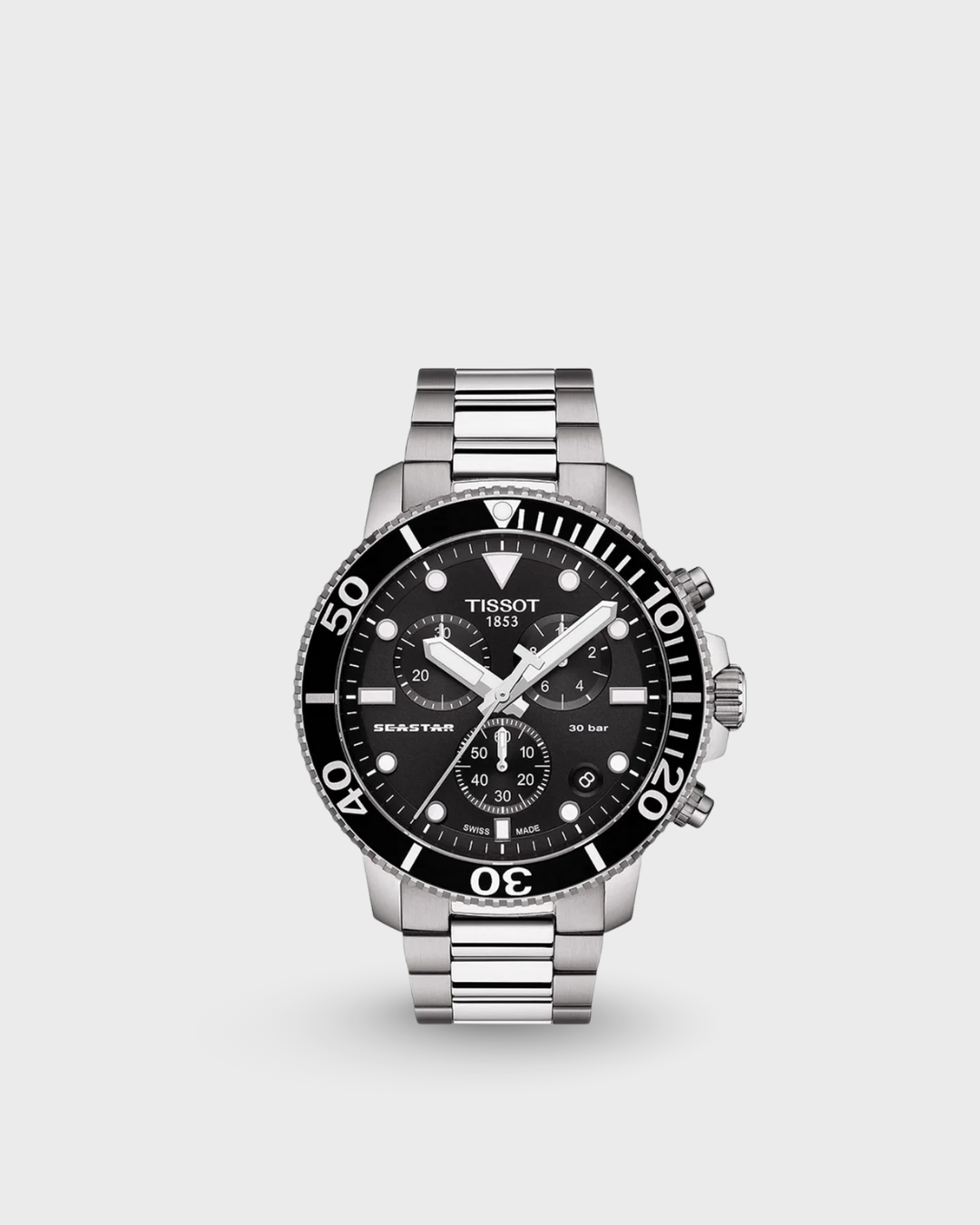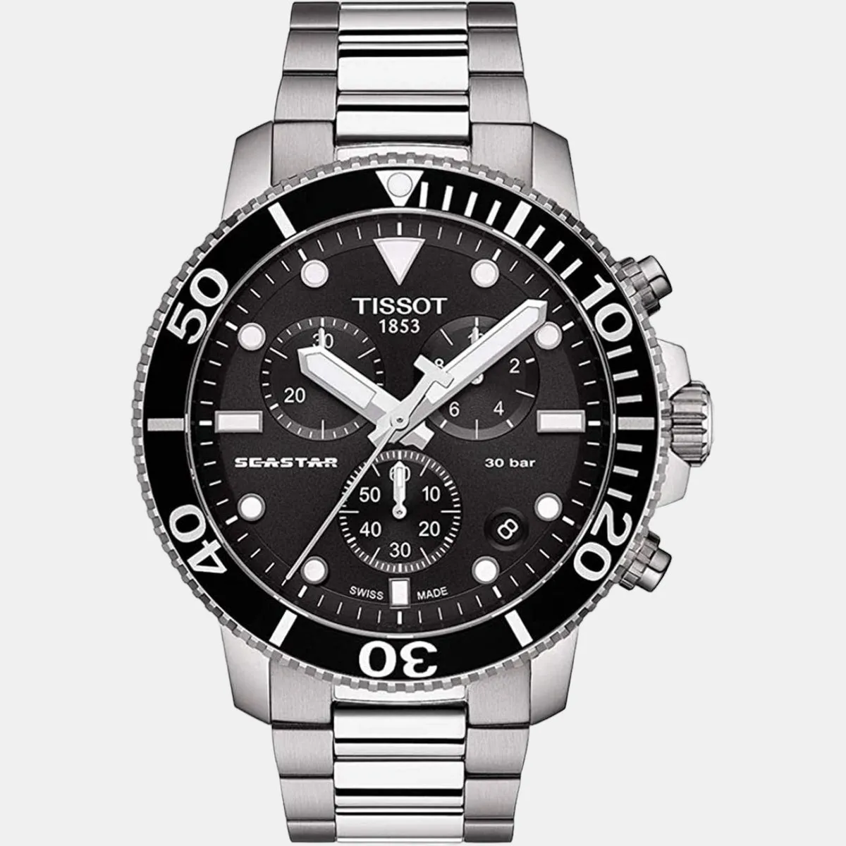 Seastar 1000 Men Quartz Black Dial Chronograph Stainless Steel Watch