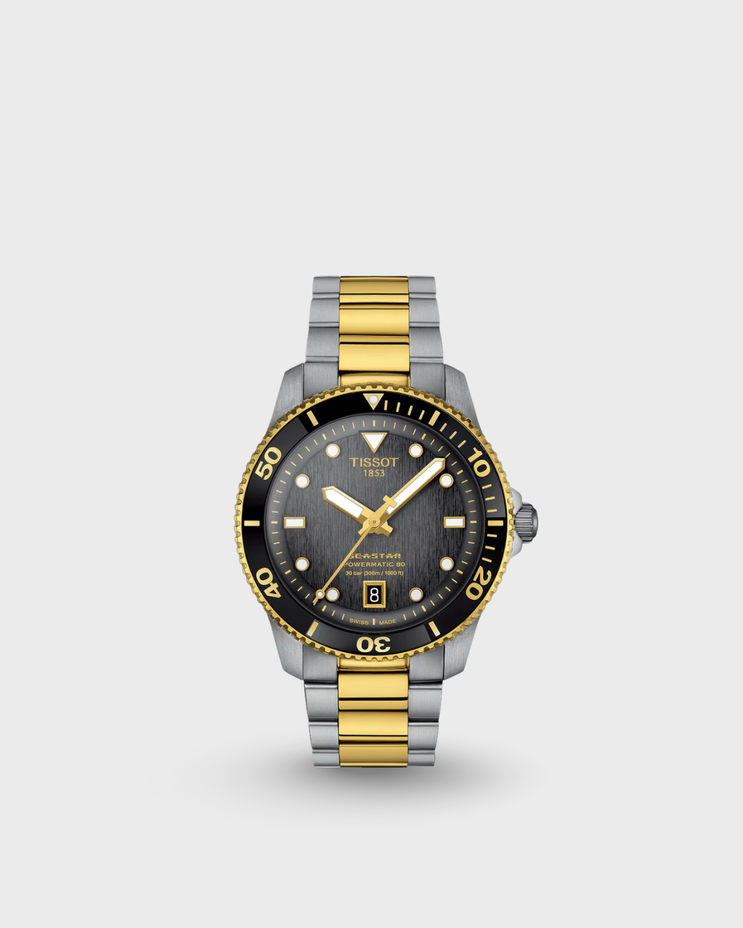 This updated edition of one of Tissot’s main collections now introduces a 40mm casing option with the Powermatic 80 at its heart. For this new release, the casing has undergone a subtle transformation, incorporating a notch along its case edges, resulting in a more compact and sophisticated appearance. These timepieces are perfect for those in search of a sporty yet assertive accessory, offering water resistance up to 1000 feet (300 meters) and improved visibility in dim conditions thanks to the Super-LumiNova® coated hands and hour markers. This release features five distinct models, varying in dial colors and finishes from stainless steel to bi-color combinations, including unique blue to black gradients and exclusive black PVD-coated options. Each variant delivers a unique aesthetic while maintaining the collection’s signature sporty yet bold appeal.