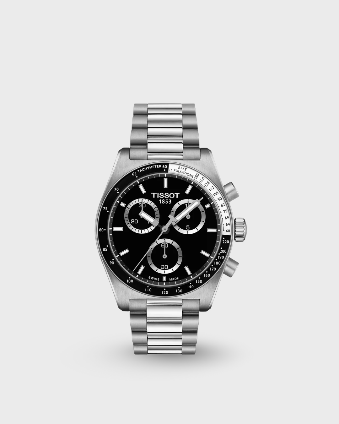 The Tissot PR516 Chronograph Quartz: a contemporary take on a cherished 1970 design. This watch showcases a sleek 40mm stainless-steel case and a dynamic dial, embodying the spirit of speed and precision. Equipped with the Quartz G10.212 Powerdrive movement, it offers unmatched accuracy for the active lifestyle. The bezel features a practical tachymeter, while Super-LumiNova®️-coated indices ensure visibility in all conditions. Its versatile design is complemented by a domed stainless-steel bracelet with a quick interchangeable system, perfect for transitioning from business meetings to casual outings. The PR516 Chronograph Quartz is a modern classic, blending with Tissot’s rich heritage.